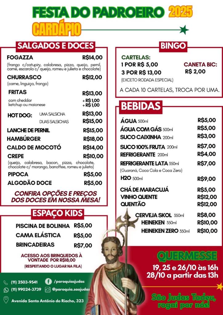 Cardápio CardápioSobre a ParóquiaA nossa obraMissasFesta do PadroeiroDoe Compartilhe com seus contatos Clique para compartilhar no Facebook(abre em nova janela) Facebook Clique para compartilhar no WhatsApp(abre em nova janela) WhatsApp Curtir Carregando...